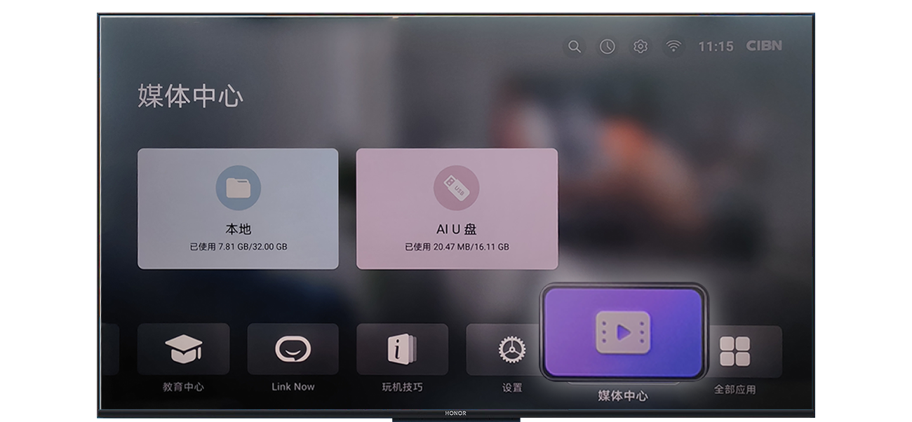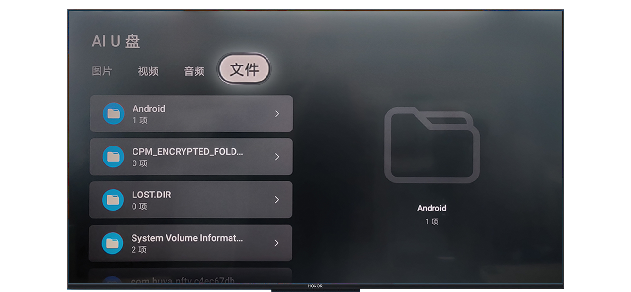 2、在智慧屏首页进入全部应用>媒体中心>U盘>文件;