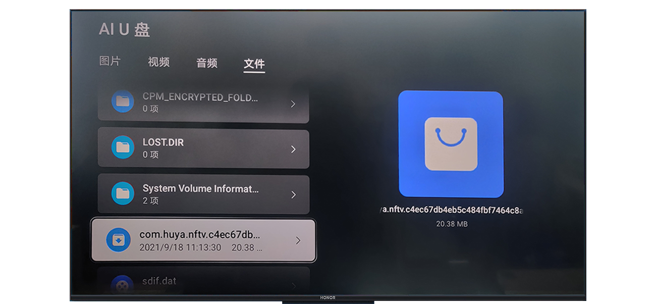1、将存有软件安装包的U盘插入智慧屏USB接口;