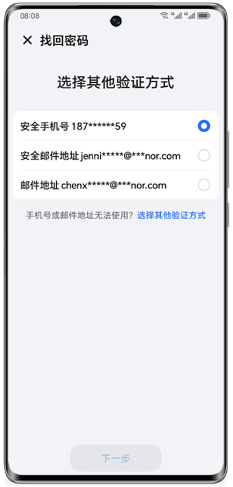 也可以进入网页端(https://hnid-drcn.cloud.honor.com),点击右上角登录>密码登录>忘记密码>输入荣耀账号,点击下一步,根据页面提示找回密码。
